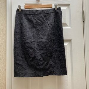 EUC black pencil skirt with textured rose print. Slit and zipper in the back, fully lined. Such a versatile piece!
