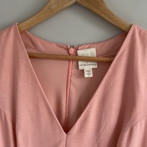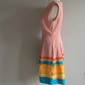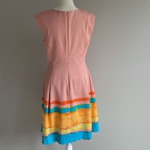 Anthropologie Tracy Resse Painterly Pastel Mini Sleeveless Dress. Size 2 with a generous fit and seems to run a little bigger than a size 2. See photo measurements to ensure a proper fit. In great preloved condition. No holes or marks. Has pockets. Sleeveless, v-neck, pleated detail around waist area. Fully lined. Gorgeous pastel pink/peach color with a painted water color look on the bottom. The perfect spring dress. Flattering and great for a variety of occasions. Mini. Rayon, viscose, and spandex. Lining is polyester and spandex.