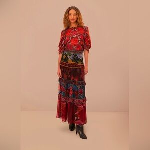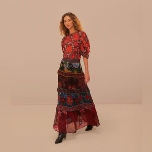 Farm Rio Floral Mix Ruffle Maxi Skirt