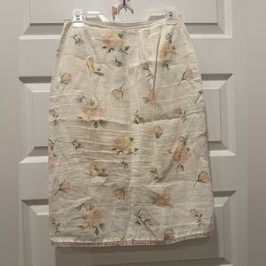 Vintage Betsey Johnson 90s rose pencil skirt. Side zipper and hook. Size small. Sparkling pink trim, fully lined. She’ll 100% linen, lining 100% polyester. Two back butt pleats. Very faint small stain on front ( never noticed till taking pics ) and two pinhead size stains on front ( all 3 shown in last pic ). #betseyjohnson #90s #fittedlinenskirt #grunge #pencilskirt