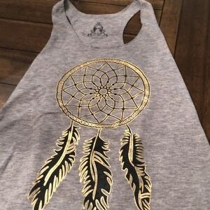 You’ll get two tank tops with this listing. Both from the designer, Bear Dance. The grey one is a size medium with a gold and black dream catcher design on the front (see pic where there is some slight piling) and the blue one is a size small with a compass and tiny studs. I purchased these together at a small boutique in town about 9 years ago. They are both in very good condition and come from a non smoking home. They are very lightweight. Any questions, please feel free to ask. Thanks for stopping by 😊