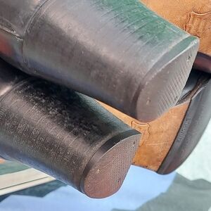These older boots are solid quality construction, leather lined, leather mid-soles. Full zipper closure.