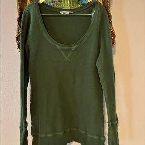 This is a great work top! Usually wore it with black slacks and heels. It is thin and a little bit sheer, but a cami under it works nice. It is not stretchy. No zippers. One gold button around the neck in the back. Black/white/teal plaid.