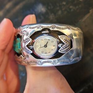 Vintage Navajo Turquoise Sterling Silver Cuff Watch