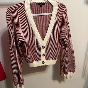 Lulus red & white striped sweater w/ 2 buttons sweater knit material.