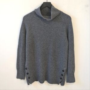 Garnet Hill Women's Grey 100% Cashmere Mock Neck Turtleneck Sweater Button Detai