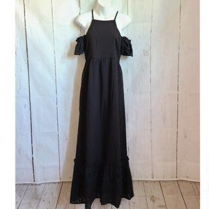 Sugar Lips black halter maxi flare eyelet dress. Has a cold shoulder look to it. Cute simple dress. Cottage core style. great quality