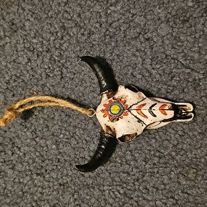 Multi Resin Cow Skull Ornaments - 2 pc multi - made of resin, hanging on wall or Christmas tree, perfect for Christmas gift or any occasion.