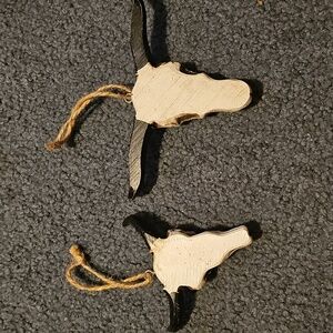 Set of 2 Rustic Western Turquoise Cross Tooled Leather Cow Skull Tree Ornaments