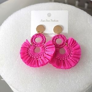 Sun Star Fashion Raffia Woven Drop Fuchsia Earrings