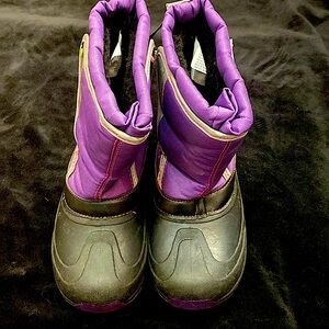 Has zipper in front AND twist/lock buttons. Brown/Tan with a TINY bit of navy and red. Has snap buttons on wrist and the back waist.