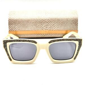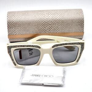 NEW MSRP $495. Jimmy Choo 51MM Embellished White/Ivory Rectangle Sunglasses. Stylish rectangle sunglasses with solid lenses and crystal embellishments. Color: White/Ivory. 100% UV Protection. Solid Lenses. Plastic. Made in Italy. 51mm width. 21mm bridge width. 145 temple length. NEW with tags. Comes with case and Jimmy Choo glass cleaning cloth.