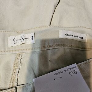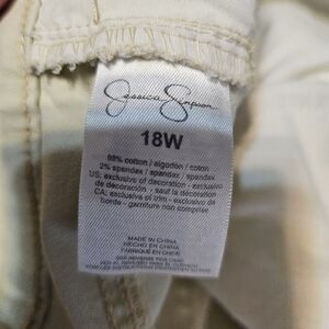 New with tag Jessica Simpson sz 18W x 24" inseam, pebble tan slouchy boyfriend capri cuffed pants. Uncuffed adds another 2". Straight waist with belt loops. Button zipper closure. Cotton/spandex blend. Have some stretch. Cotton/spandex blend. Machine wash cold. Tumble dry low. $15 or 2/$20 (2 select items for $20, not 2 of 1 item!)