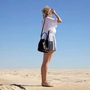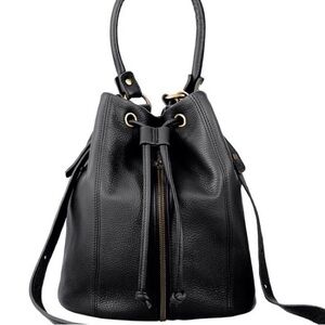 Status Anxiety Black Leather Drawstring Bucket Crossbody Bag