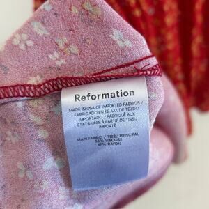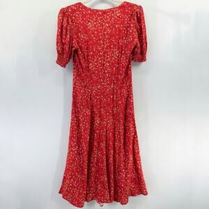Reformation Lacey Dress Red Floral Midi Puff Sleeve Sweetheart Neck Size 10