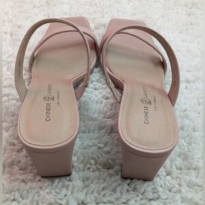 Elegant nude heeled sandals by Chinese Laundry. Features a stylish strap design.