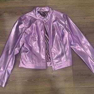 Bright pink tank top with glittery crystal 'Santa Baby' text. Sleeveless and stylish.
