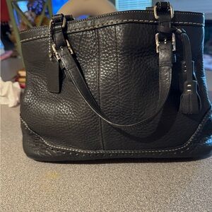Black Shoulder Bag with Textured Leather and Silver Hardware