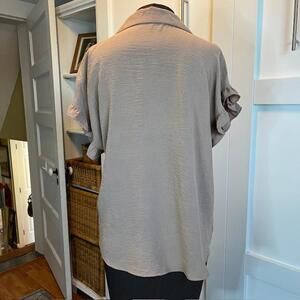 Elevate your wardrobe with this stylish beige button-up blouse that combines elegance and comfort. Crafted from a soft, lightweight fabric, this shirt features - Classic button-up front for versatility. - Ruffled short sleeves for a feminine touch. - Relaxed fit, perfect for layering or wearing alone. - Neutral beige color, easy to pair with any outfit. - Ideal for casual outings or dressier events. Wear it with jeans or a skirt to complete any look effortlessly!