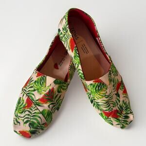 TOMS Women’s Canvas Slip-On Shoes Spanish Villa Watermelon Palms Size 9