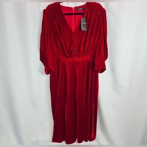 Ralph Lauren red velvet Puff sleeves Midi dress