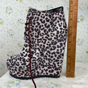Never Worn Xhilaration Furry Snow Leopard Womens Shoes Platform Wedge Heels