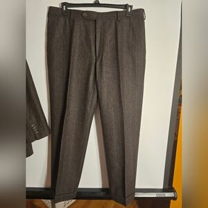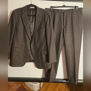 SAMUELSOHN MEN'S SUIT PINSTRIPES BROWN/BLUE 100% WOOL SIZE 46R