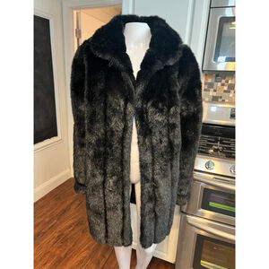 Vintage Dennis Basso Mid Length Faux Fur Coat Black Medium