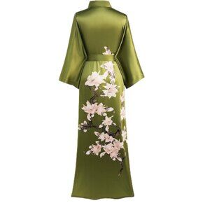 NWT Women's Robe, Satin Floral Kimono Robe, Babeyond Brand Size OS. Floor length, long sleeve kimono robe with sash tie closure and pockets.