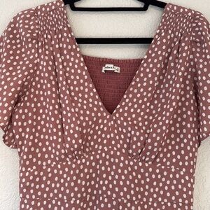 Mauve pink/purple ish color with white polka dots. Size Small. In like new condition, only worn two times! Washed with fragrance-free detergent.
