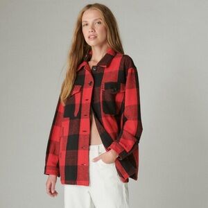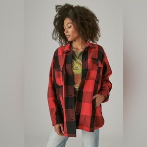 Lucky Brand Red/Black Plaid Shacket Medium