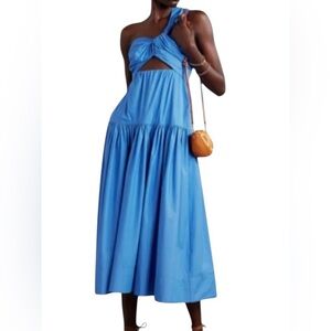 Ciao Lucia Elettra Cotton Poplin Grosgrain Trim Cami Shirred Bodice Midi Dress