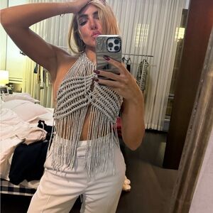 GIUSEPPE DI MORABITO FRINGE TOP IN SILVER NEVER WORN ONE SIZE