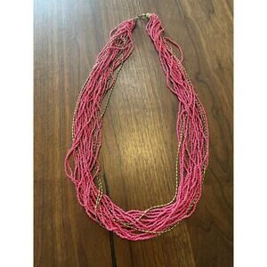 Womens Necklace Beaded Hot Pink Gold Twisted Long 34” Business Casual