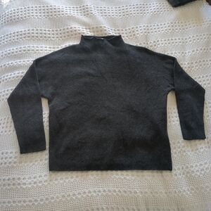 Dusan Cashmere Silk Sweater Mock Neck Pullover Large Gray Long Sleeve