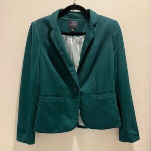 Forest green blazer with striped green and white lining.