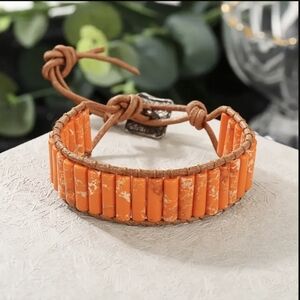 Bracelet Stone Leather Vintage Style Rocker Hippie Surfer Mens Chakra Bracelet