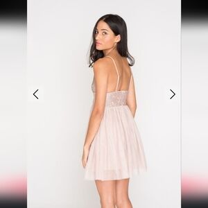 Forever21 Sequined Pink Champaigne Tulle Mini Dress Women's Size Small