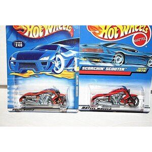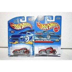 Hot Wheels Scorchin' Scooter #1075 and #240 Duncan's Motorcycle red and orange