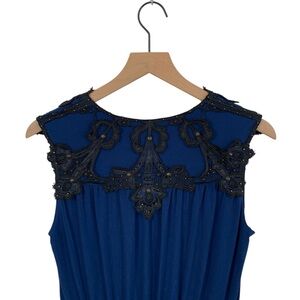 Laundry Cobalt Blue with Black Lace Faux Wrap Midi Dress