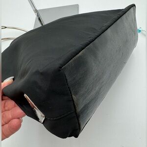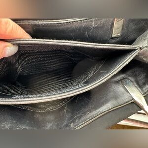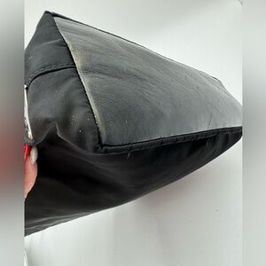 Prada - Authentic - Black Canvas & Leather Shoulder Bag with Metal Handles