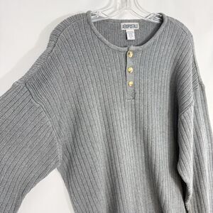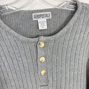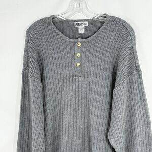 Vintage Aeropostale Sweater Mens Size XL Gray Henley Knit Ribbed Pullover