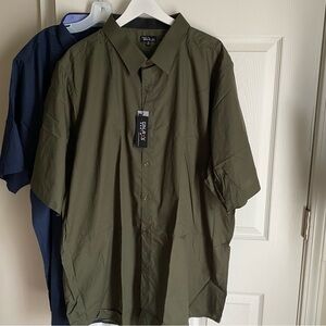 NWT Lot of 2 Galaxy Mens Navy & Olive Green Short Sleeve Button Up Shirt 5XL