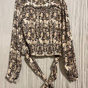 Anthropologie Rabbit + Floral Print Front Wrap Slightly Cropped Blouse