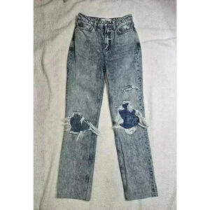 Elevate your denim game with these We The Free People Y2K jeans. The high-rise, balloon leg design gives a stylish and comfortable fit, perfect for any occasion. The taper hem adds a flattering touch to the overall look, while the distressed details give it a trendy edge.