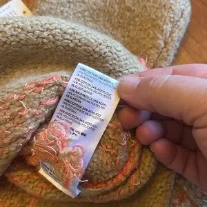 Pink-orange and tan super soft long tunic sweater with a 130.00 price tag! Questions? Leave a comment below!