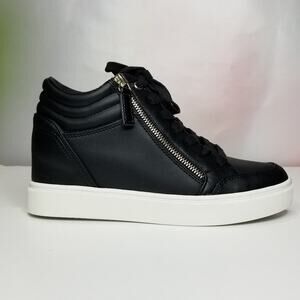 Nine West Women's Tons High Top Hidden Wedge Sneakers Size 8.5 Black NWT