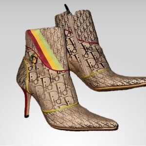 Satin heeled sandals in black. Crystal-cut appliqués throughout. originally $695, currently on Ssense for $274. original box included!