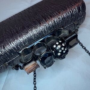 JNB Silver 4 finger skull silver studded skull clutch w removable chain mel11167