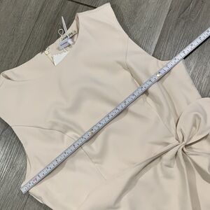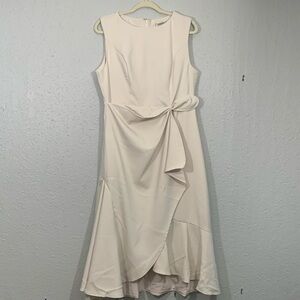 FEHAUTE Sleeveless Midi Elegant A-line Dress with Waist Twist for Day-to-Night Ivory/Cream